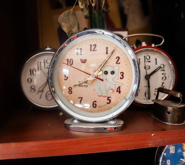 Many Equity alarm clocks boast an automatic time synchronization feature, greatly simplifying the setup process for users. After inserting fresh batteries, such as two AA alkaline batteries into the designated compartment with correct polarity, or restoring electrical power, the clock is designed to automatically adjust itself. For models equipped with an LCD display, the clock will often move its hands or update its digital readout to reflect the correct time shown on the display. This intelligent function eliminates the need for extensive manual adjustments, providing immediate and accurate timekeeping. The convenience of automatic synchronization means that once power is established, the clock takes over, ensuring precision without user intervention. This capability is particularly beneficial after a power outage or when replacing old batteries, as it quickly re-establishes the correct time. While some initial manual alignment might precede this, the automatic process then fine-tunes the clock, offering a reliable and user-friendly experience for daily use;